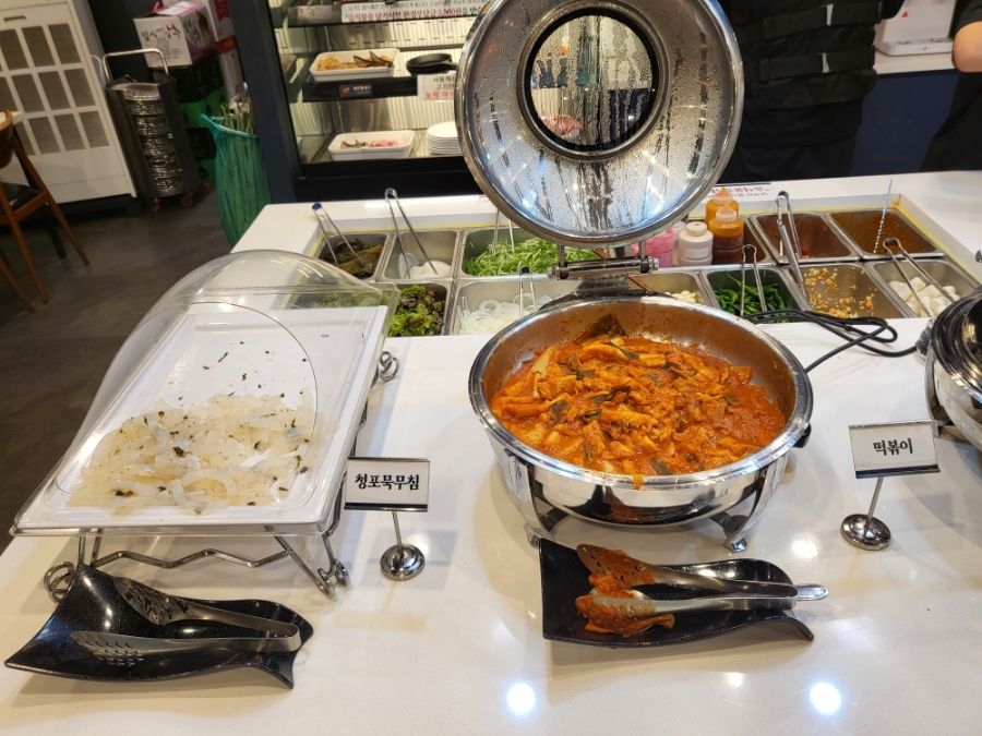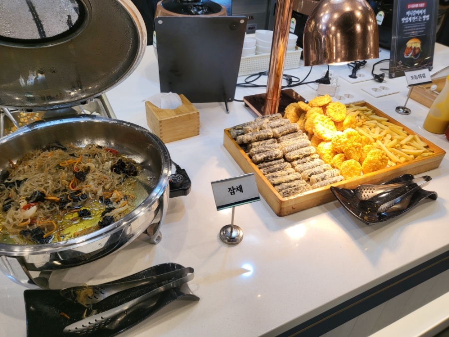 청포묵무침, 떡볶이, 잡채, 모듬튀김(김말이, 고구마, 감자튀김), 모닝빵 정도가 추가된것 같아요