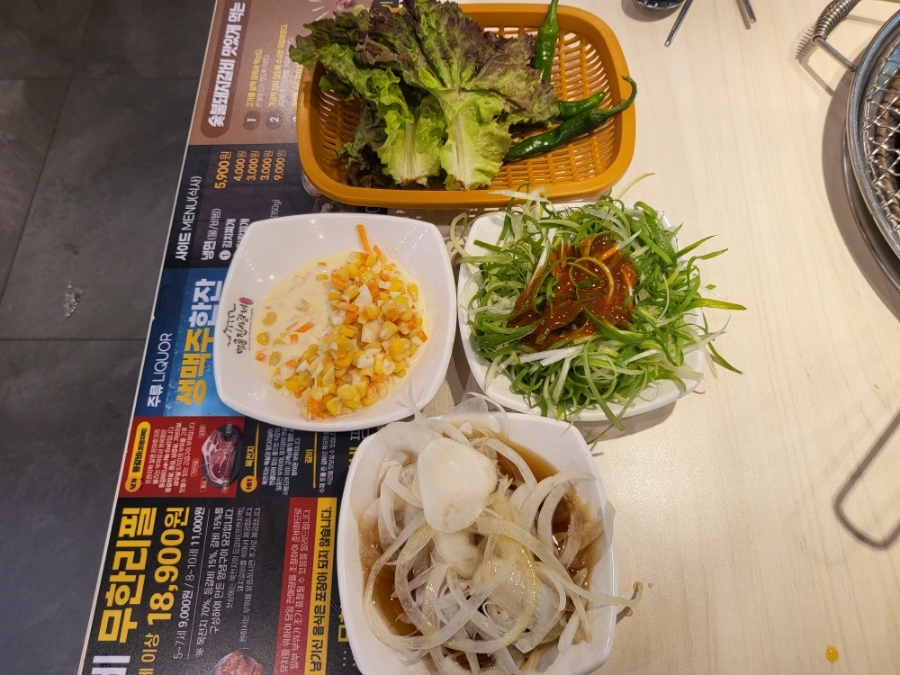 자자 그럼 가장 중요한 고기와 사이드 음식이 어떻게 구성되어 있는지 살펴보죠