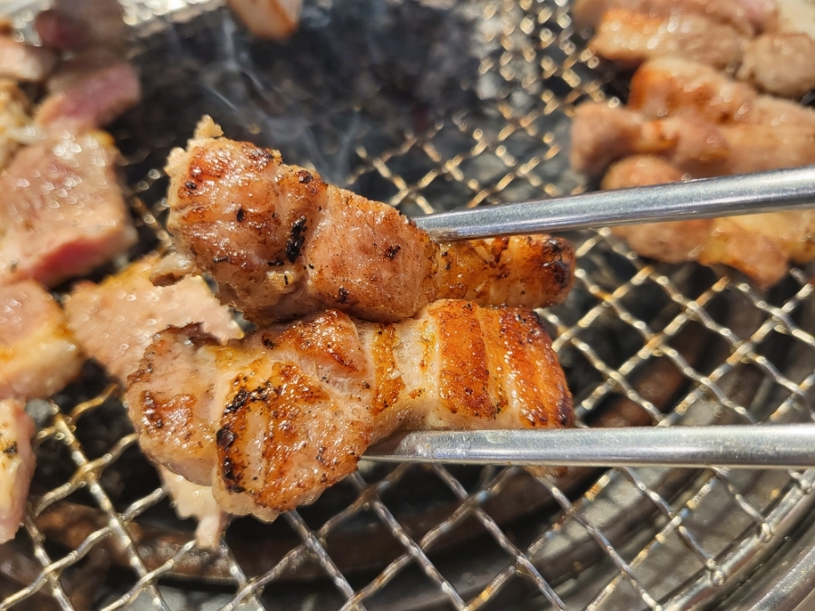 느낄 수 있는것은 물론 왠만한 삼겹살 전문점보다 훨씬 맛있었어요, 질긴 식감이나 냉동맛이 없고 육즙 좋고 통통한 맛에 삼겹살, 삼겹살 무한리필은 명륜진사갈비 라고 해도 될것 같아요