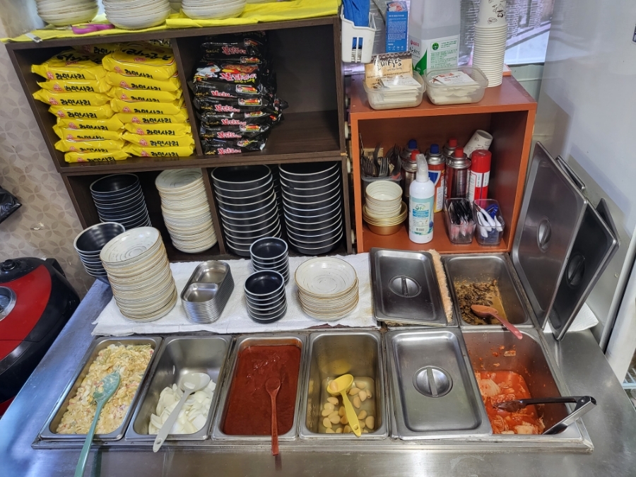 라면은 판매용!! 라면사리와 불닭볶음면이 구비되어 있는 모습