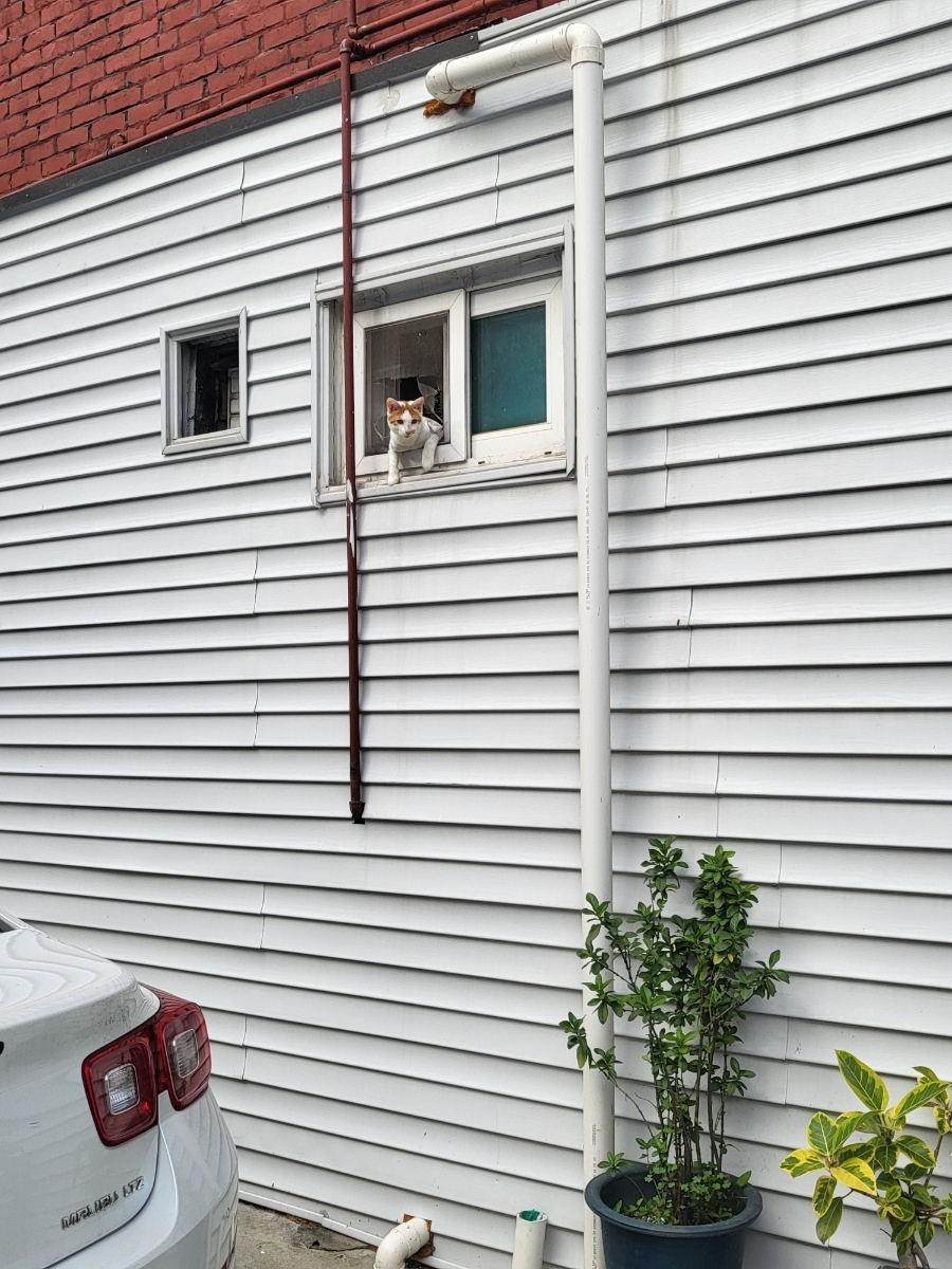 주차장에 차를 대고 식당에 들어서려 하는데 뜨거운 시선이 느껴져 보니 창문사이로