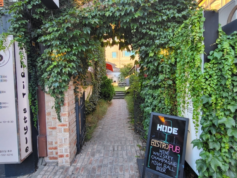 덩쿨식물로 자연친화적인 외관을 보여주고 있는 음식점및 카페 였고 좁은 골목이