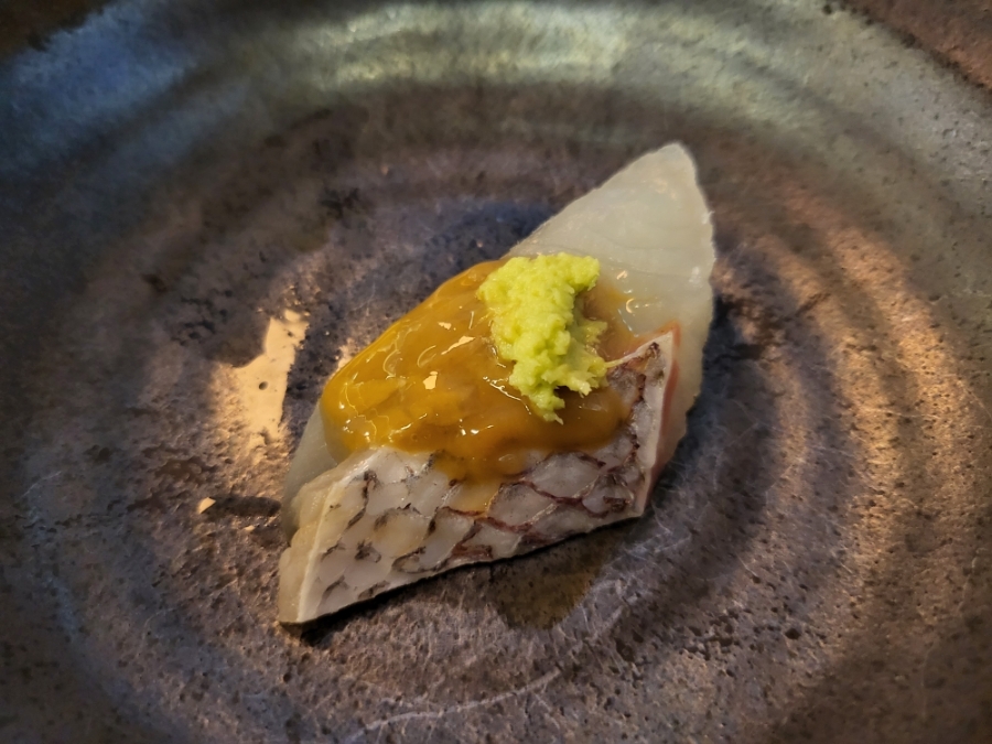 숙성니 잘되어 있었고 숙성회 특유의 식감이 잘 묻어났어요, 같이나온 고노와다와 광어 + 와사비 살짝 발라 먹어주면 풍부한 바다맛이 입안을 헤엄치는것 같더라구요 같이 갔던 지인도 숙성회 맛있다고 엄지척 하네요