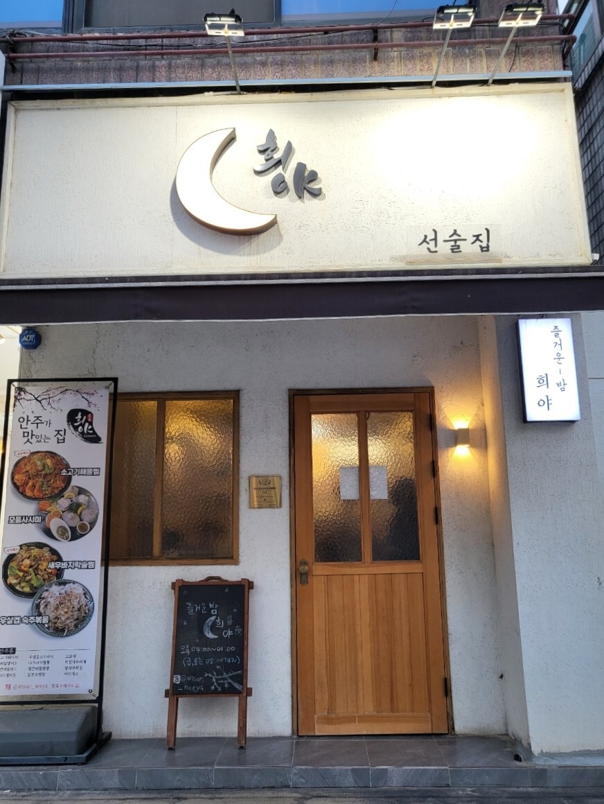 '즐거운 밤'이라는 뜻이 담긴 희야 상호명이 었고 선술집이라고 적혀있었는데