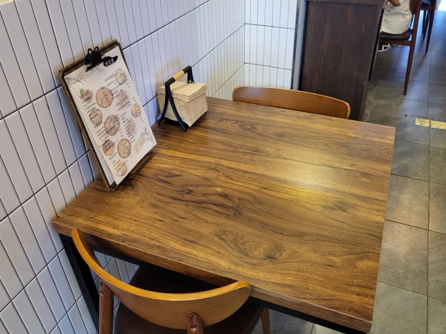 각 테이블에 티슈와 메뉴판이 위치해 있었고
