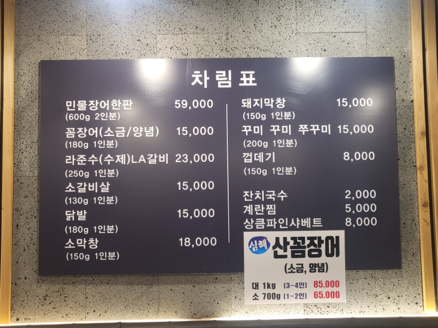 장어뿐만 아니라 꼼장어, LA갈비, 소갈비살