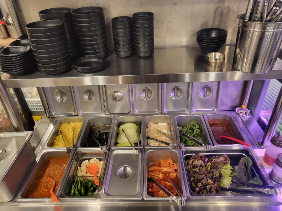 한켠에는 셀프바를 이용하여 굉장히 다양한 음식을 직접 떠다 먹을 수 있었는데요