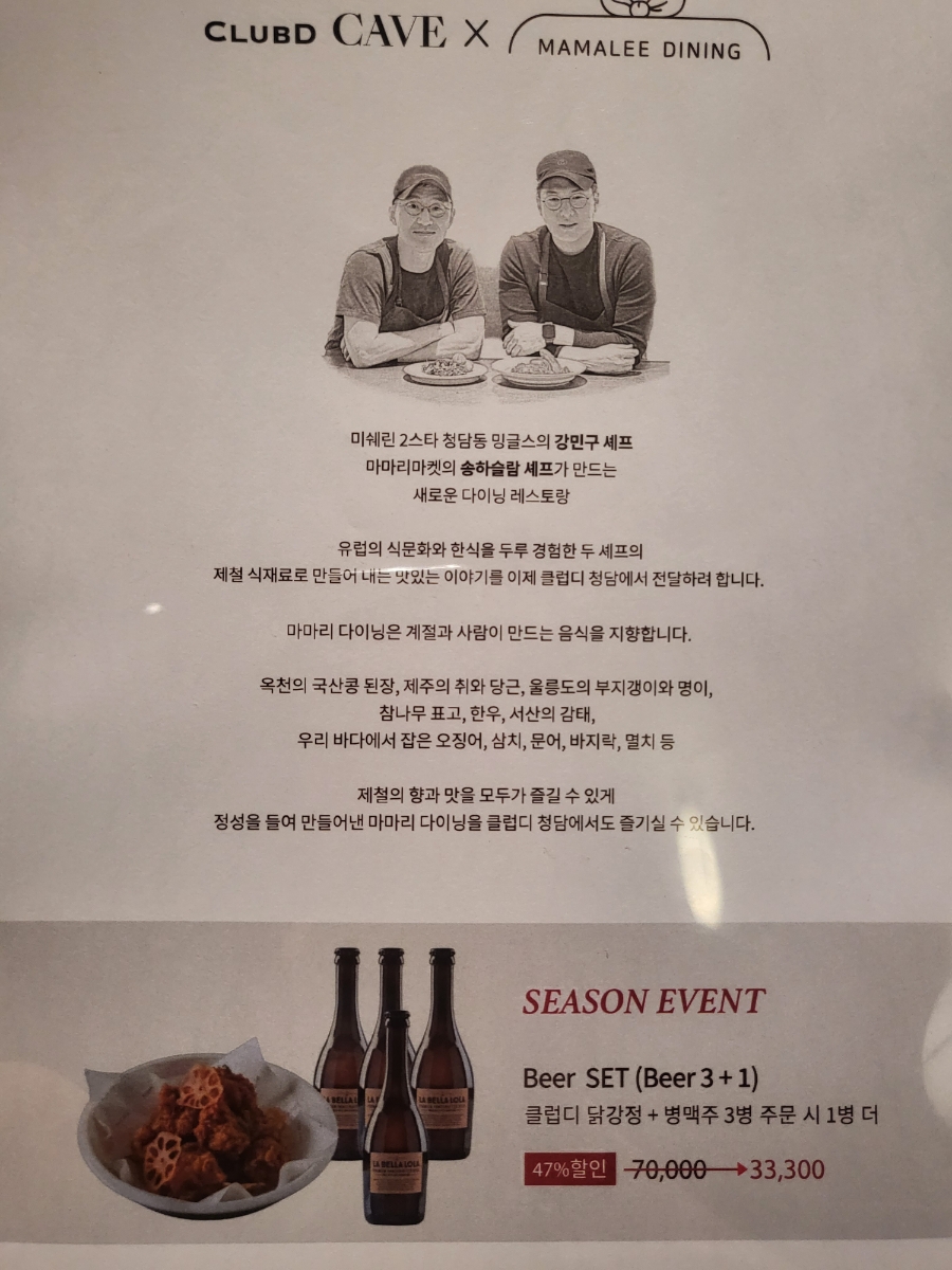 '미쉐린 2스타 청담동 밍글스 & 마마리마켓' 콜라보로 탄생한 다이닝 레스토랑이라고