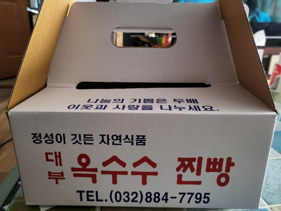대부 옥수수찐빵 1박스를 들고 인증샷
