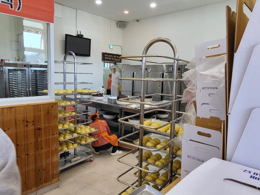 황금빛 노란빛 찐빵을 분주하게 만들고