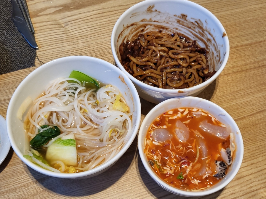 누들 코너에서 쌀국수, 짜장면을 가져와서