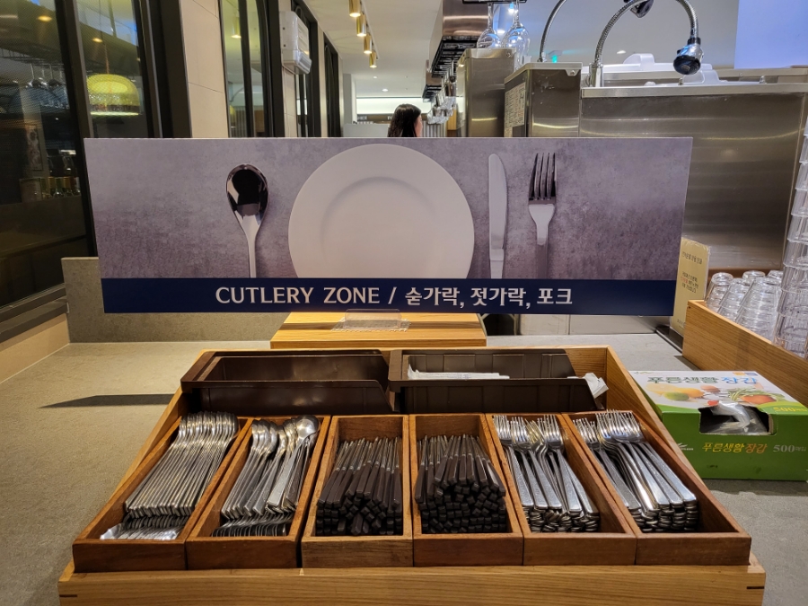 수저, 나이프, 물티슈등 필요한 식기도구는