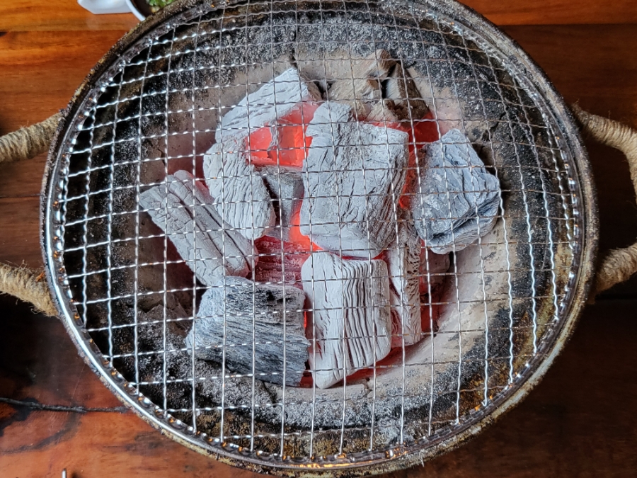 강력한 화력을 자랑하는 화덕에 숯불이 담겨