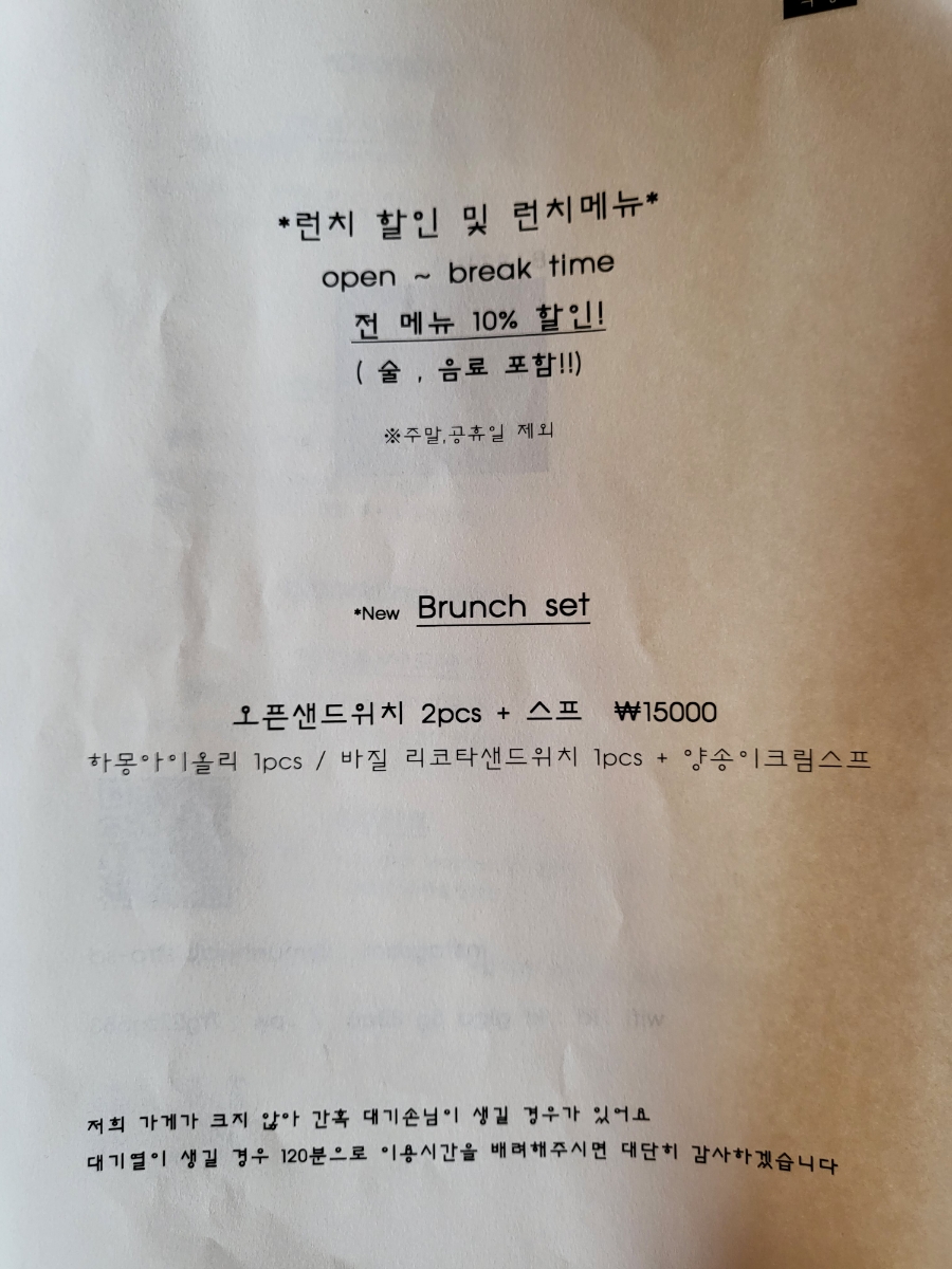 간격이 좁아 옆손님 이야기가 다들릴정도에 소규모 레스토랑이었어요