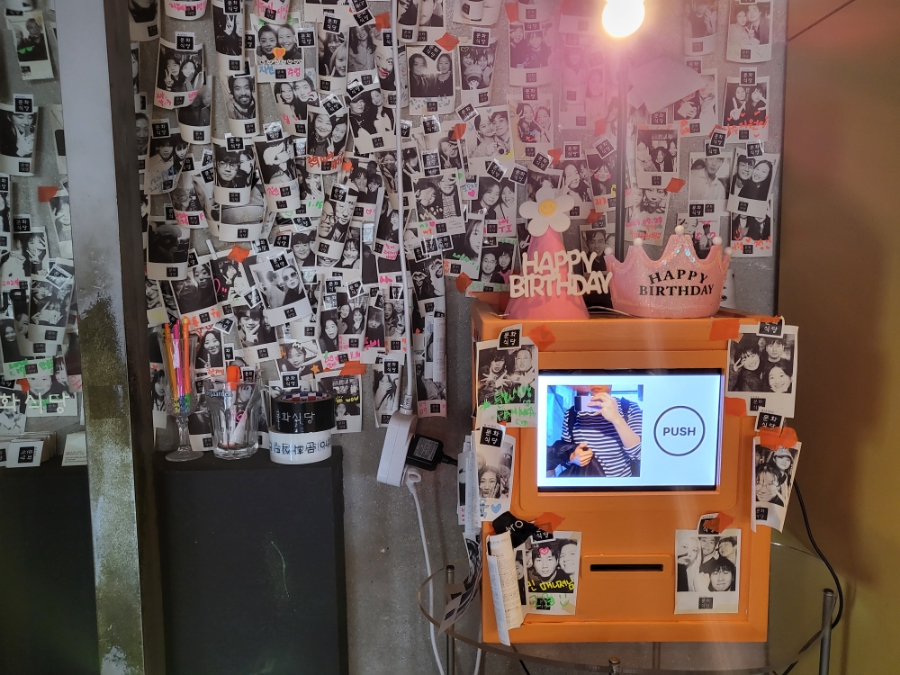 나가는 입구에 사진찍는 기계가 있어 저희도 찰칵 추억을 붙어보았네요