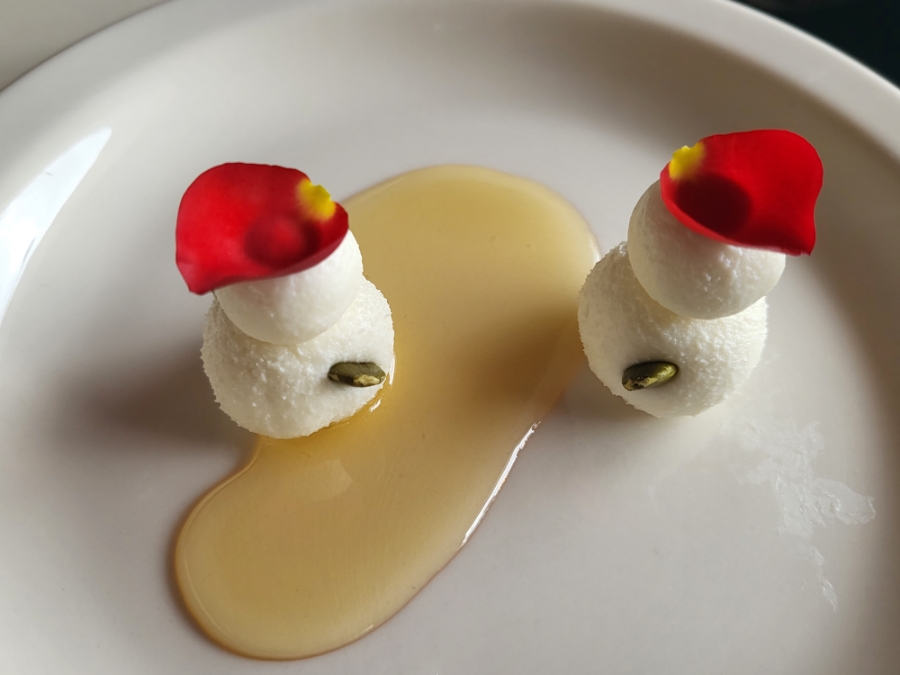 눈사람모양에 꿀+치즈 디저트를 내주셨어요