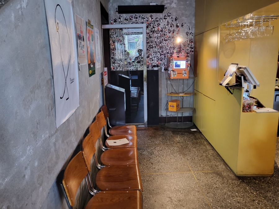 벽면에 작은 글씨로 간판이 적혀있었고 긴