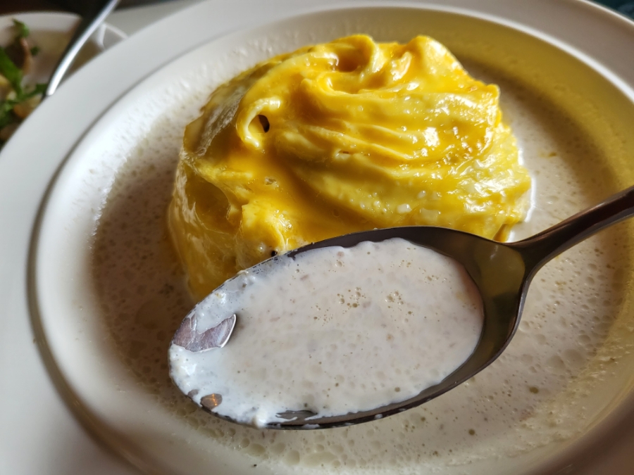 크림과 사골국물이 적절하게 배합된 스프맛이 너무 맛있고 매력적이라 계속먹게됐어요, 오르라이스 달걀도 몽글몽글 부드럽고