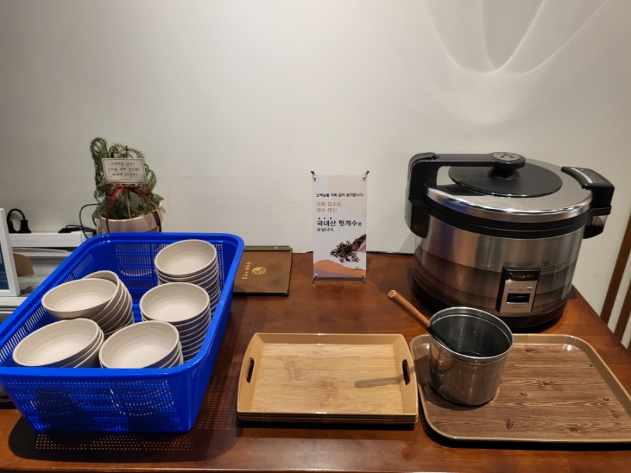 한곳에서는 누룽지,숭늉을 떠서 먹을 수 있었고 식전 혹은 식후에 먹기 좋아보이네요