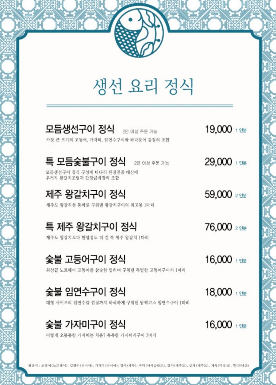 모듬생선구이 정식을 시작으로 제주왕갈치,