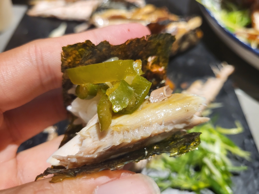 바삭함이 살아있었던 고등어구이, 짜지 않아서 그냥 먹어도 좋았고 김+밥+고등어+양념에 같이 먹으니 조합이 최고더라구요