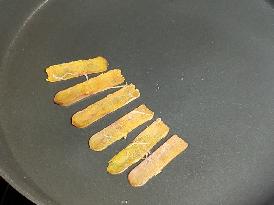 얇게 썬 어란이라 쉽게 탈 수 있으니