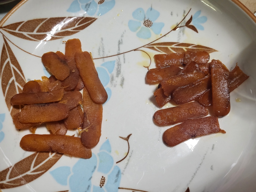 오른쪽이 참기름을 넣고 구운어란입니다