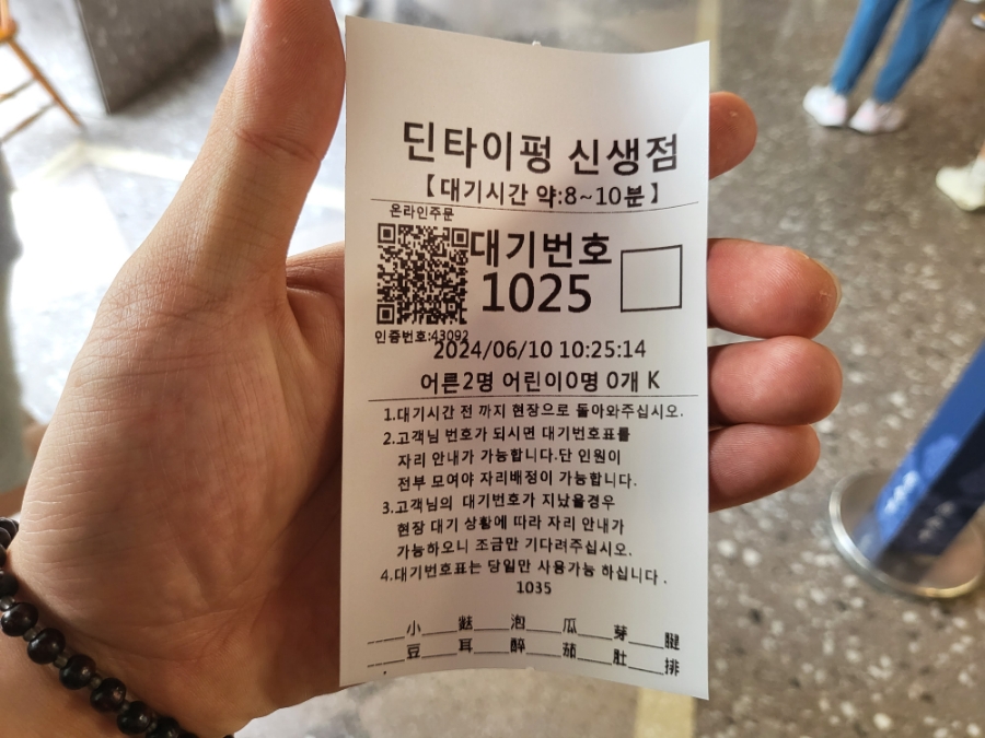 저희는 기다린지 5분도 안되서 가지고 있는 번호가 떠 빠르게 들어갔어요