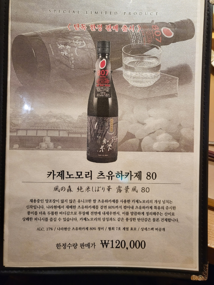 사케1병을 필수로 주문하여야 하고 혹시