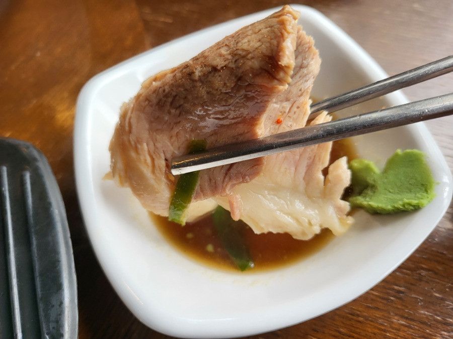 살코기와 비계가 균등하게 배분되어 있었고 가장중요한 식감도 부드러웠어요, 당연히