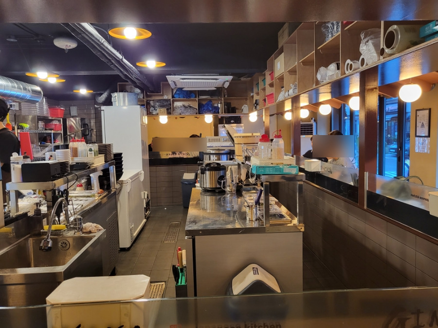 내부로 들어서면 큰 오픈키친 공간이 보이고 'ㄷ'자 현태의 큰 닷지석을 확인할 수