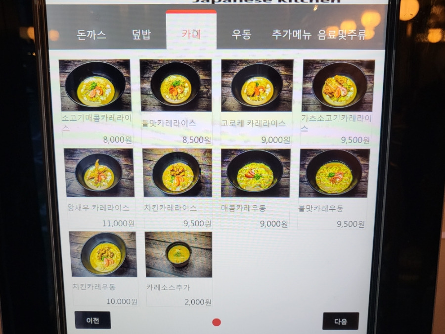 카레는 크게 밥/우동으로 나뉘어져 있었고 매운맛이나 소고기, 새우, 치킨, 고로케등에 토핑을 결정하면 될것 같네요