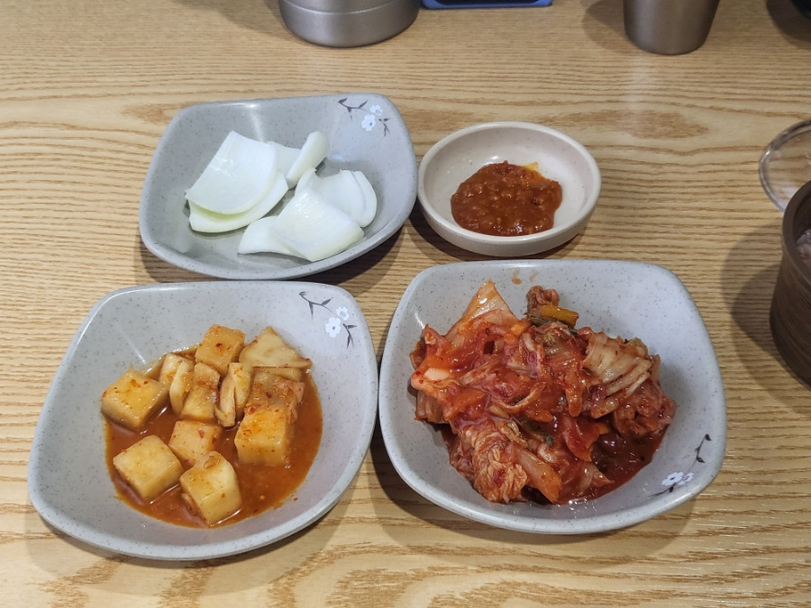 처음에는 양파와쌈장 깍두기와 배추김치를 가져다 주시는데 다른 필요한 음식을