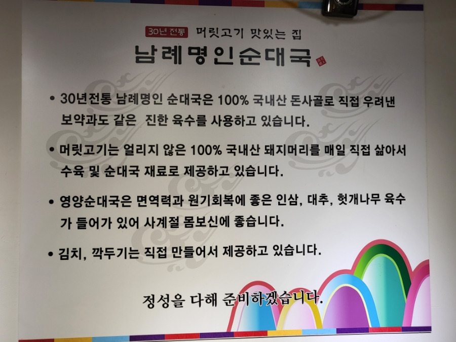 남례명인순대국 소개글이 걸려있었는데요