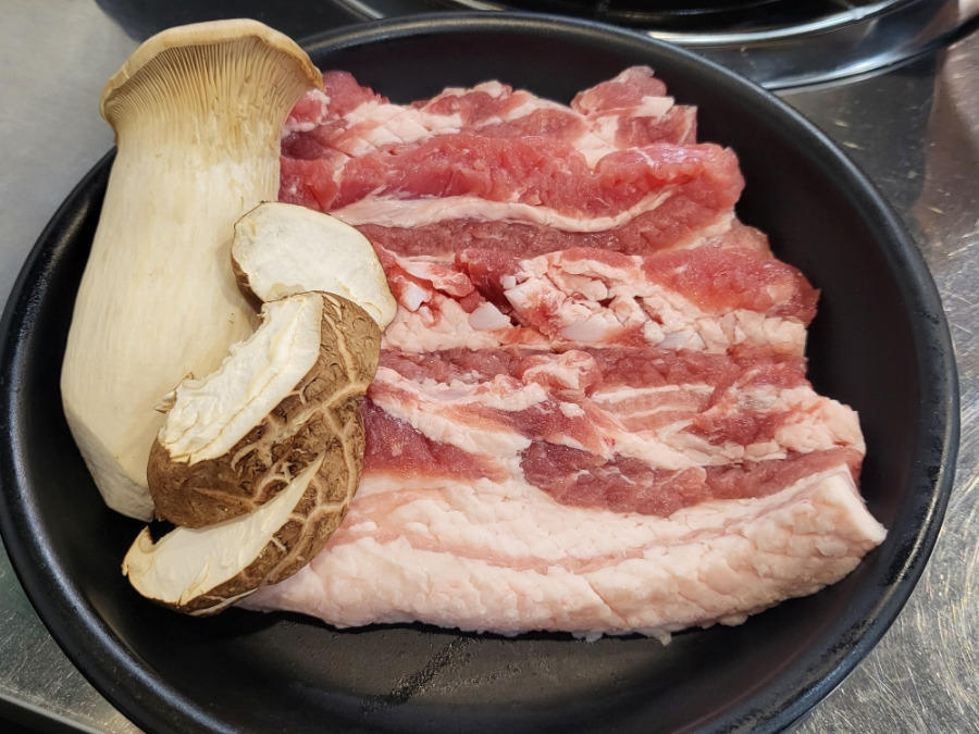 세송이,표고버섯이 같이 나왔고 삼겹살에