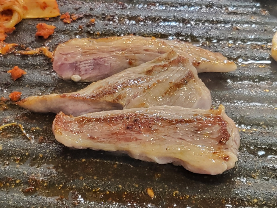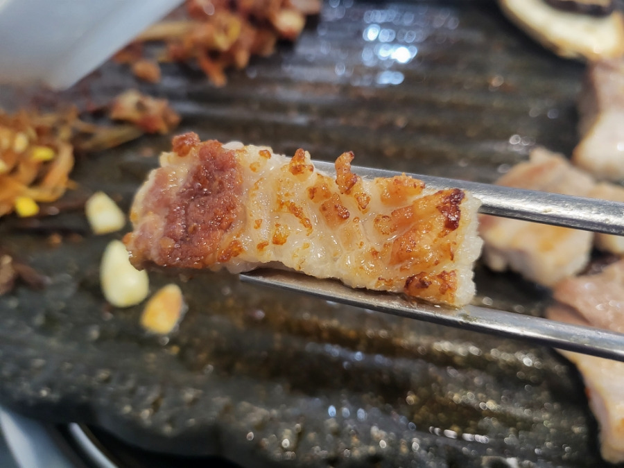 세세한 칼집이 나있어 칼맞은 삼겹살이라고 부르고 싶더라구요 사장님의 정성이