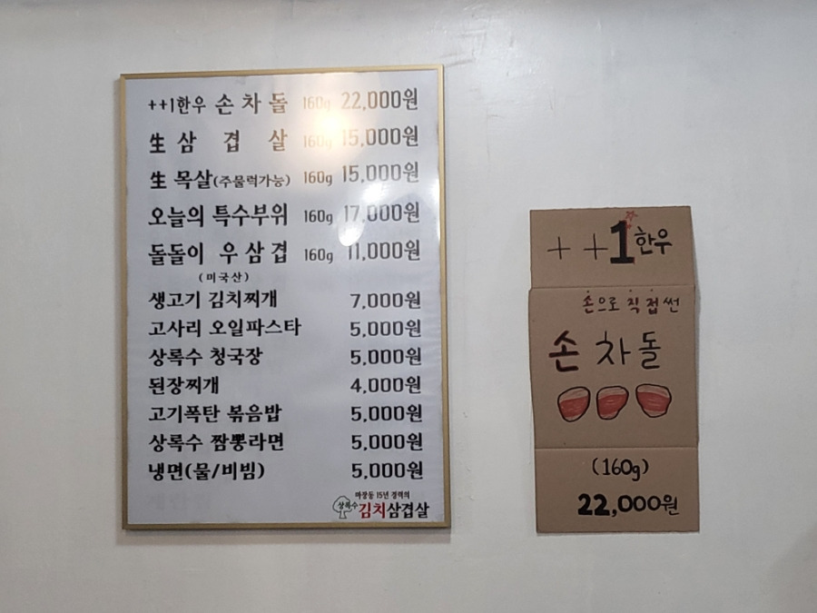 상록수김치삼겹살 메뉴판을 보도록 하죠