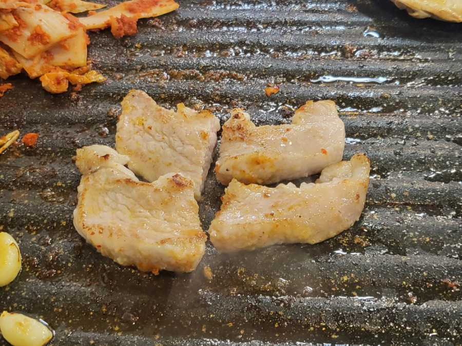 칼집이 세세히 살아있는 삼겹살과 숙성김치 맛이 제대로라 종종들려 먹을 고기맛집이