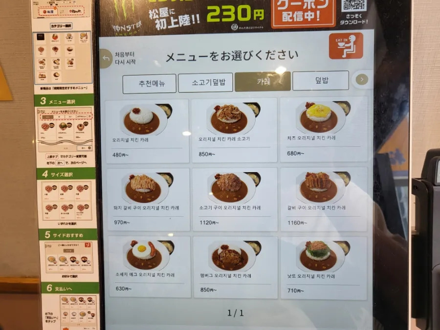 일본어/영어/중국어/한국어로 해석이 되어있어 너무나 쉽게 주문을 할 수 있었어요
