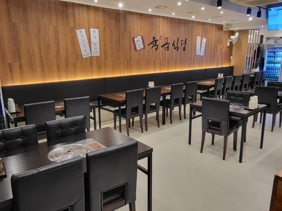 있었고 중앙으로는 2인테이블 3~4개정도 위치해있는 모습 돼지냄새나 내장류냄새