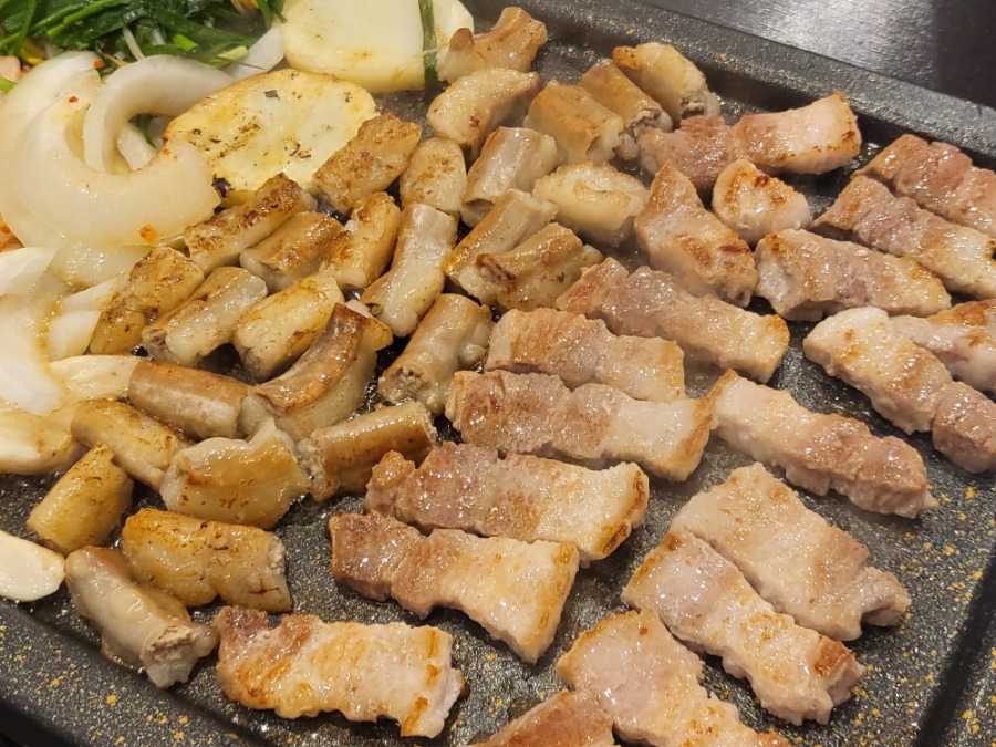 미리 주방에서 초벌하여 나와 삼겹살과