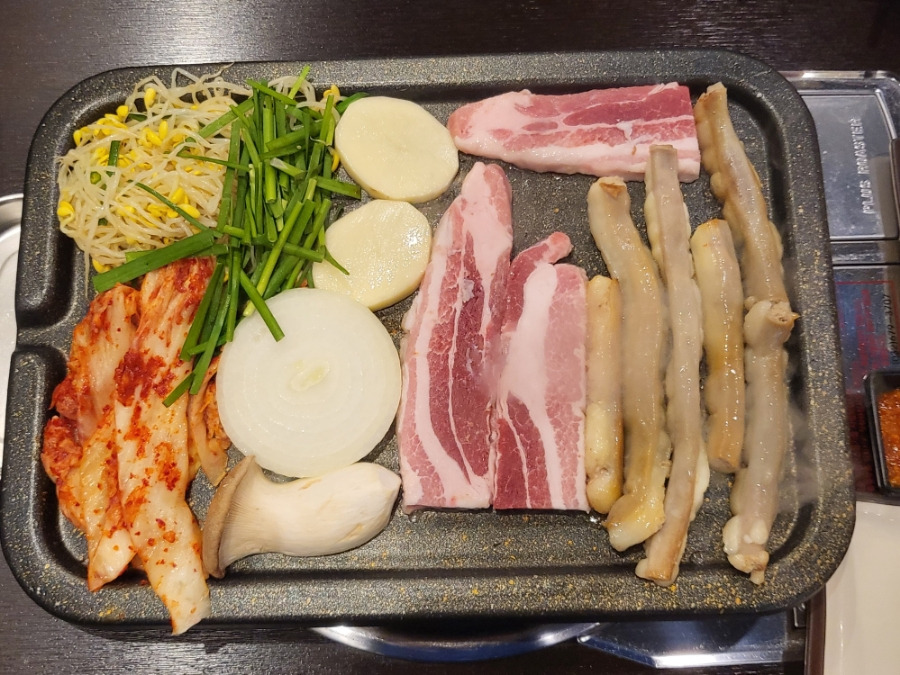 돼지 삼겹살과 한우 소곱창이 세트라니