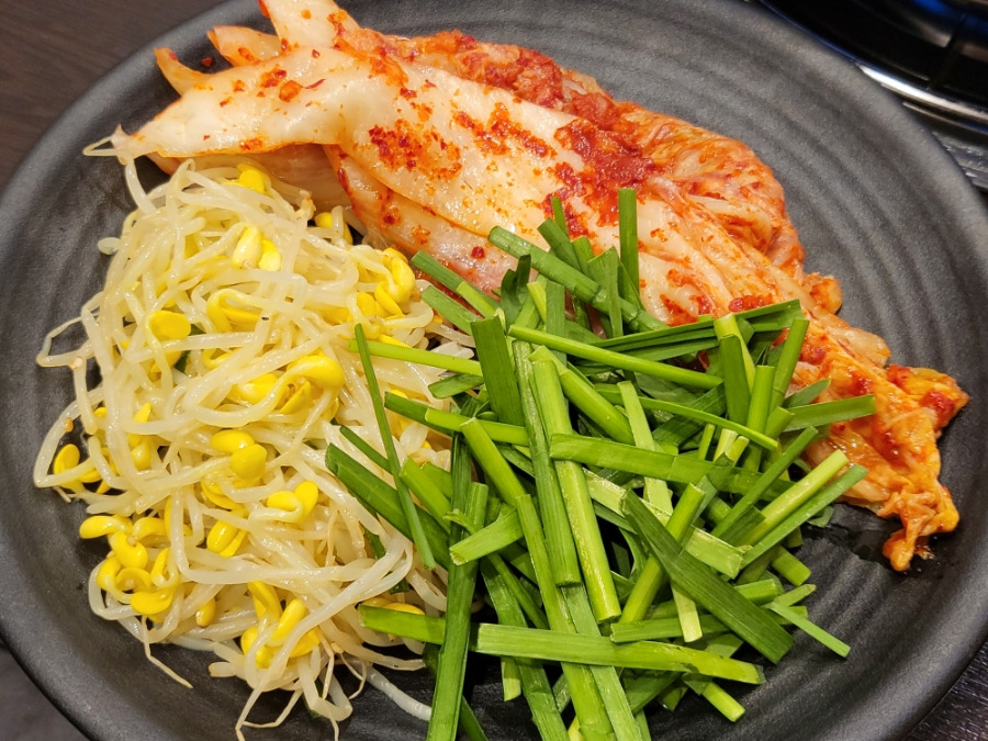 있는 콩나물, 김치, 부추가 아름답게