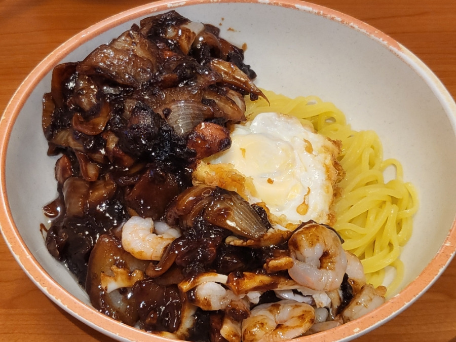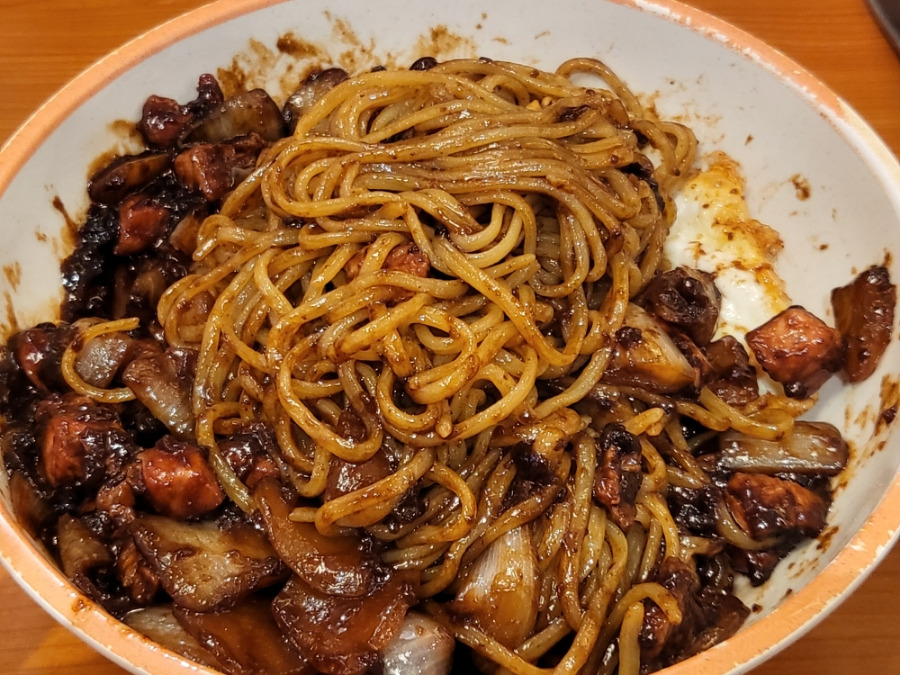 양파와 고기가 큼지막한 편이고 짜장 소스 맛은 옛짜장 소스 맛이 났어요, 많이 기름진 맛은 아니었고 추억이 떠오르는맛에 면양도
