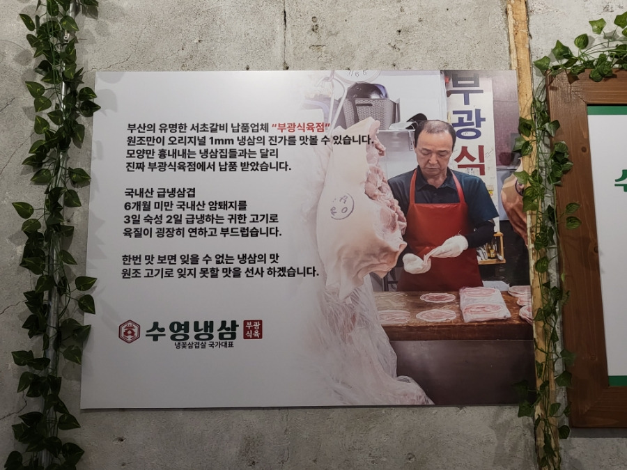 이수역 수영냉삼은 부산 서초갈비 납품업체 부광식육점에서 납품받는다고 하는데요