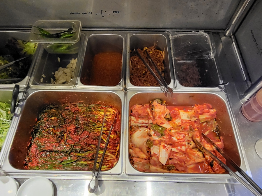 파김치, 배추김치, 콩나물 무침과 먹을때