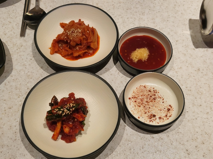 기본반찬과 수육을 시키면 나오는 소스들이 같이 나왔네요