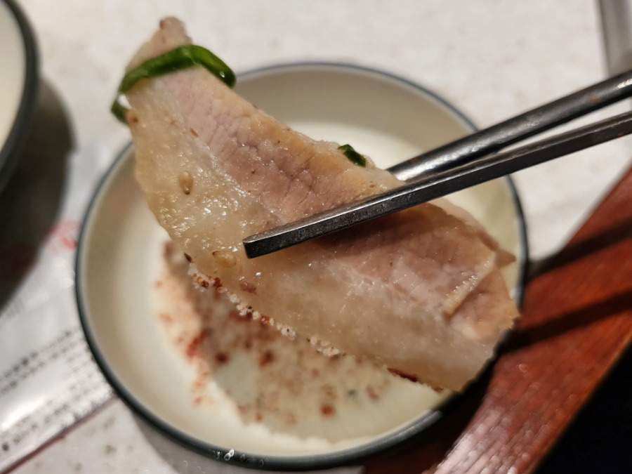 2만원 가격대에 다양한 부위를 즐길 수 있는 가성비 좋았던 수육이었어요, 담백한 부위, 기름진 부위, 오소리감투, 순대로 이루어져 있었고 특히 초고추장+마늘베이스 양념이 한국인 입맛을 취향저격해 느끼하든 담백하든 어떤 음식과도 조합이 좋아 더 잘들어가는게 포인트 사이드 곁들임이나 술안주로