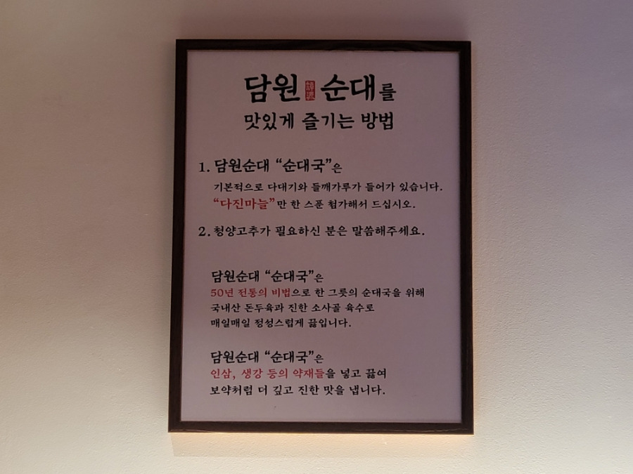 강남 맛집 담원순대국 맛있게 즐기는 방법도 기재되어 있었는데요