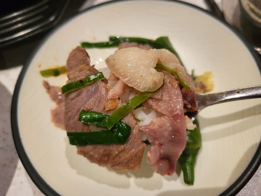 고기들이 상당히 많이있었어요, 맛있게 먹는 방법대로 마늘 한숟가락이 들어가는 순간